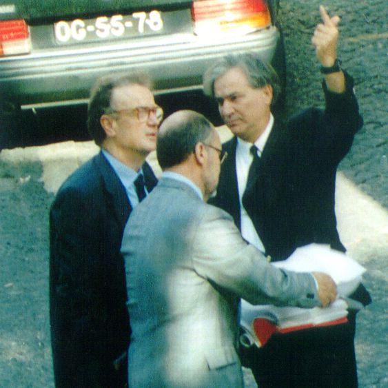 Com o Presidente da Câmara Municipal de Lisboa, Dr Jorge Sampaio e o Grão-Mestre do GOL, Professor João Rosado Correia, junto à Escola Oficina nº1, Lisboa